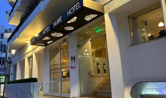 A small beachside hotel with naturally bright rooms in the town center features a rooftop indoor pool and a terrace